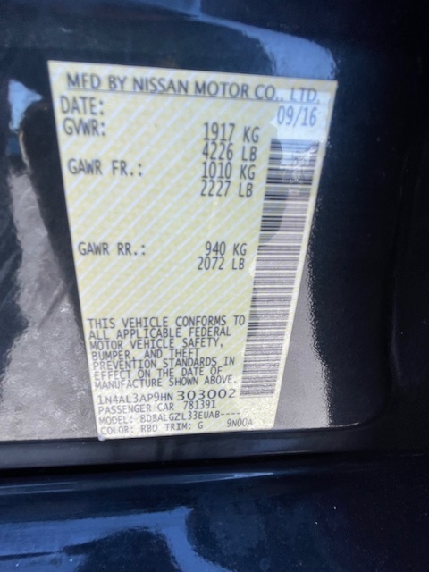 VIN: 1N4AL3AP9HN303002