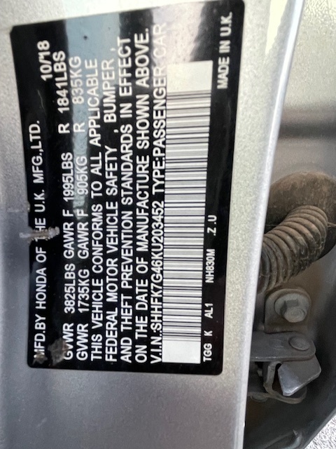 VIN: SHHFK7G46KU203452