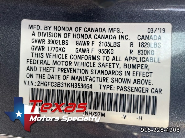VIN: 2HGFC3B31KH353664