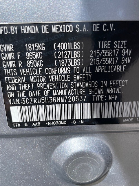 VIN: 3CZRU5H36NM720537